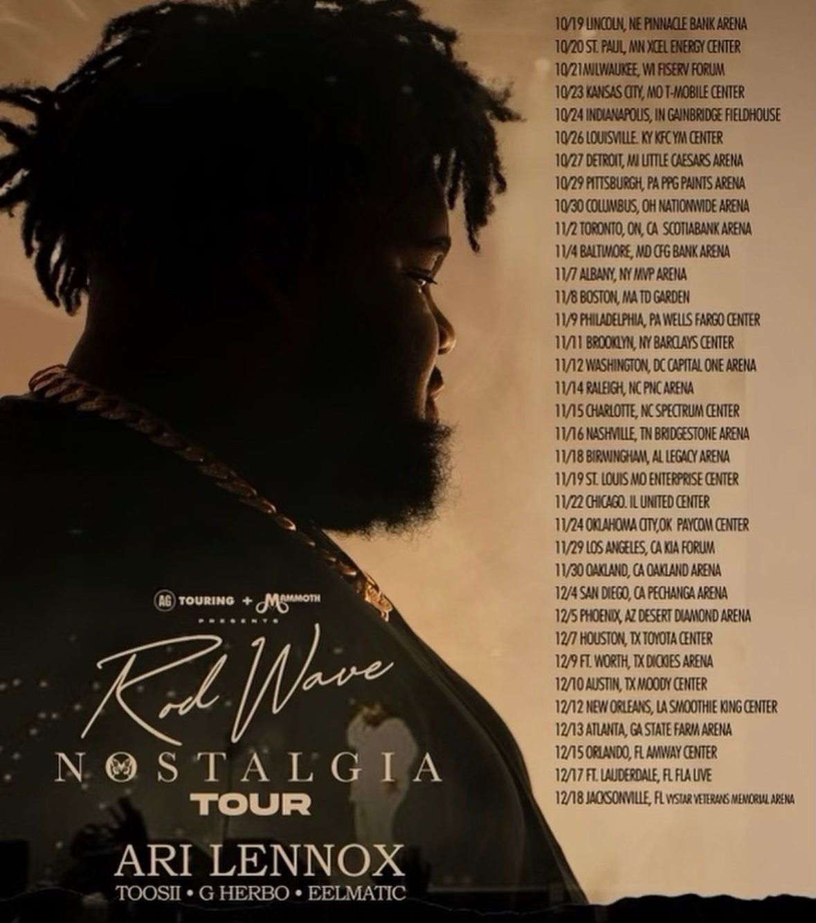 Get ready to immerse yourself in a wave of emotions as Rod Wave embarks on his sensational 'Nostalgia Tour.' Join us for an unforgettable musical journey through the past and present, where every note and lyric is a heartfelt memory waiting to be made. Don't miss out on this once-in-a-lifetime experience!